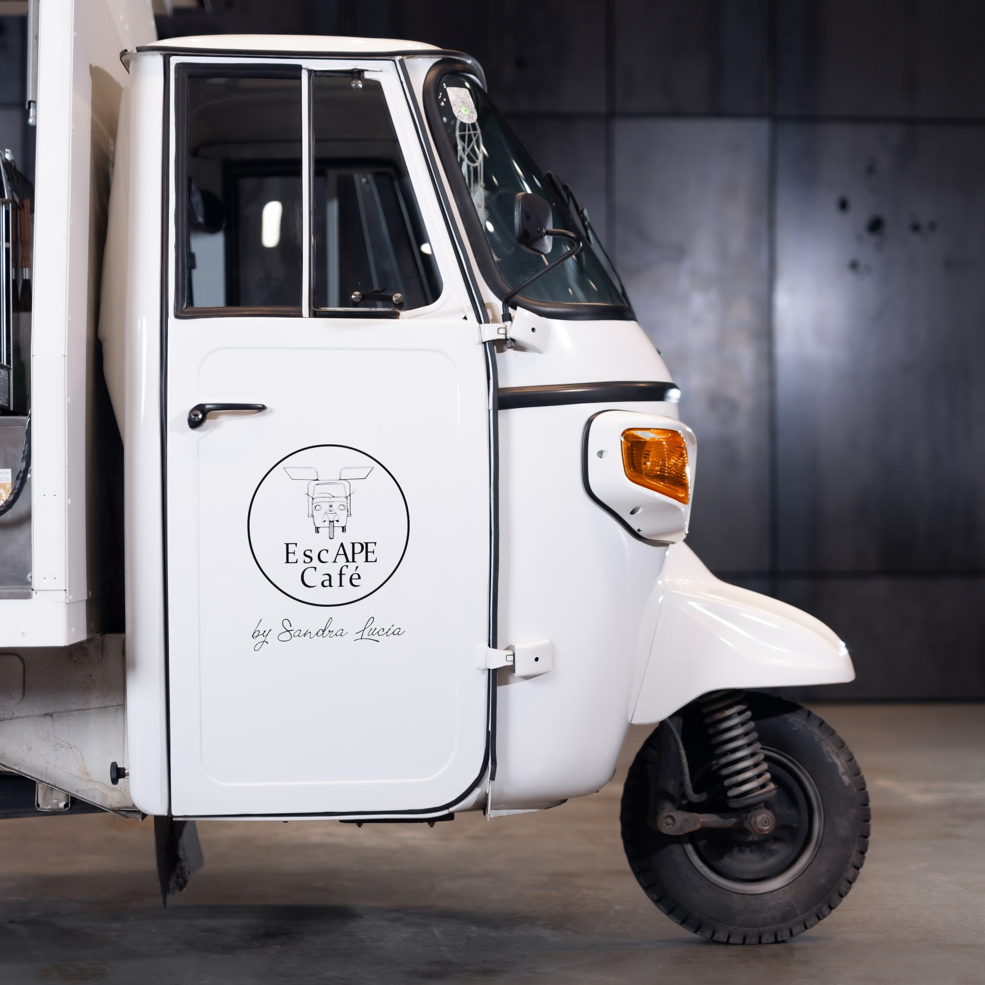 Tirol’s schönste mobile Kaffeebar, edel und stilvoll in einer weißen Piaggio Ape.